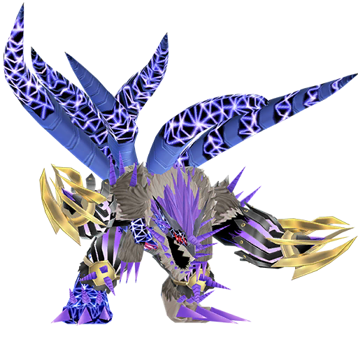 When the Protagonist is convinced into downloading the new "Mephisgram" app, Herrismon and its partner try to come up with what type of picture they should take. As they ponder, they see Impmon about to kill a group of humans and stop it. Impmon then notices the smartphone, and, sensing Mephistomon from inside the app, jumps into the phone – the phone also sucking in Herissmon and its partner. Once inside, they are confronted by Mephistomon, the apps creator, who attacks them – not wanting a Tamer to stop its plan. Battle Challenge: Mephistomon Herissmon warp digivolves to Rasenmon and easily defeats Mephistomon, though it runs away saying it had stolen a Beelzemon's power and that it would use it when the time was right. As they search for it, they come across Impmon again and tell it that they had fought Mephistomon. As Impmon demands to know where it was, they are attacked by Gulfmon, the newly digivolved version of Mephistomon who had used the power of its app to digivolve. As Gulfmon attacks them, it becomes more and more powerful during the fight due to all the data constantly being uploaded to Mephisgram. Rasenmon fights and stalls Gulfmon, with Impmon leaving to search for its power, and after a long fought battle – Gulfmon wins. Before it can kill Rasenmon and its Tamer however, it is interrupted by Beelzemon and Gallantmon, with Gallantmon having found the last of Beelzemon's data and allowing it to have it back. The combined might of Rasenmon, a member of the Seven Deadly Digimon, and a member of the Royal Knights isn't enough to defeat Gulfmon however which forces Beelzemon and Gallantmon to digivolve to Beelzemon: Blast Mode and Gallantmon: Crimson Mode. The three of them are then able to kill Gulfmon. Clash Battle: Gulfmon