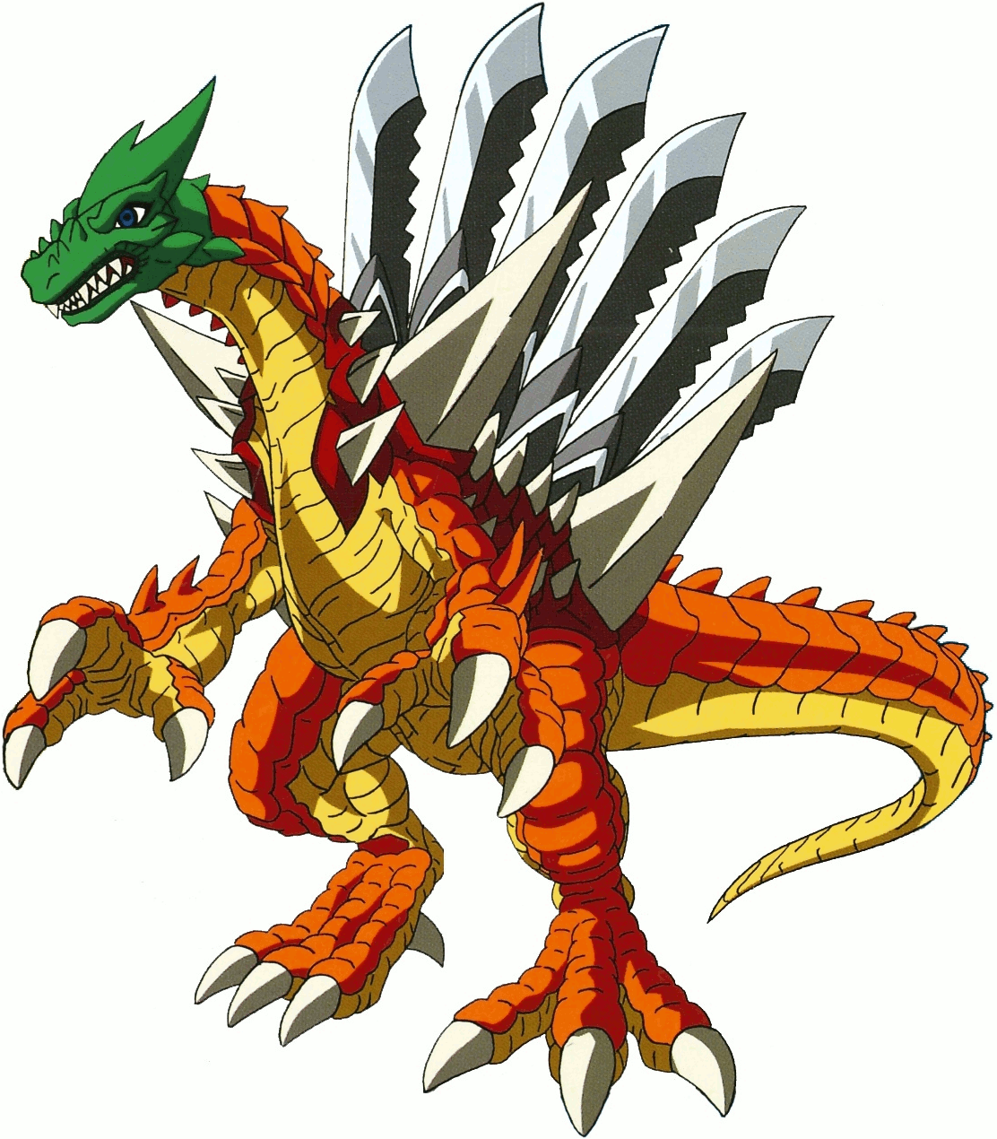 BioSupinomon is BioStegomon's next stage, based on Spinomon, which Ivan assumes through "Hyper Bio Extra Evolution". BioSupinomon has armor and rows of detachable spikes on his body.