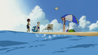 In Digimon Adventure 02: Digimon Hurricane Landing!!/Transcendent Evolution!! The Golden Digimentals, Davis Motomiya, DemiVeemon, Yolei Inoue, Upamon, Cody Hida, and Poromon are at a beach in Chiba[2] when they receive an e-mail from Kari Kamiya asking for help.