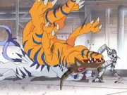 - When Garurumon lunges towards Andromon, he has blue markings on his hind paws.