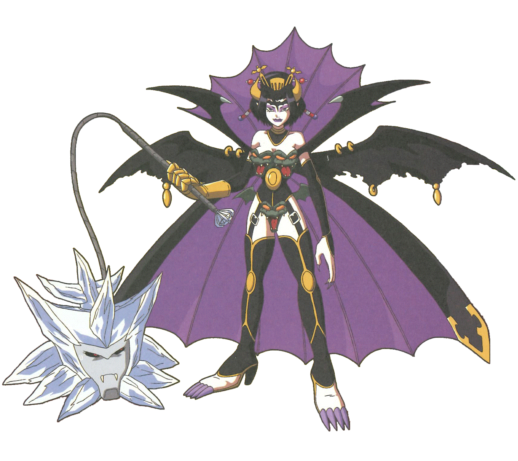 As one of the Three Generals, Laylamon oversees the progress of her commanders IceDevimon and Lucemon, and controls the feral Daipenmon, MachineDramon, and Arukadhimon.