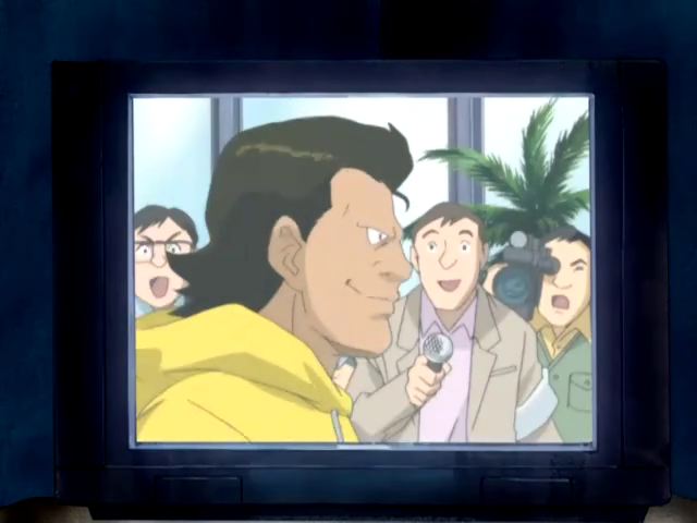 He arrives in Yokohama for the title match against Hayase Harris. When training the night before the match, Togemon attacks him, but he is saved by Gaomon and Thomas H. Norstein, and is terrified by the event. He borrows his clothes for Thomas to lure Togemon and Minnie Harris to the boxing ring. Never Meet Your Heroes