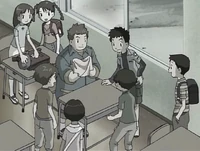 J.P.'s classmates. In the American English dub, the boy with glasses is named Kenta, likely as a reference to Kenta Kitagawa from Digimon Tamers.