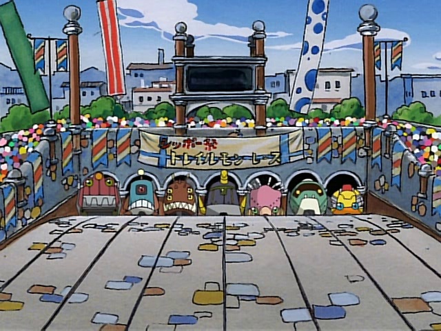 Piddomon is the announcer for the Great Trailmon Race. Impartial to the proceedings, he hams it up and excites the crowd as he relays the elimination of each Trailmon. At the end of the race, he triumphantly announces the winner as well as the prize: a year's supply of Digi-Lube, and a trip to the Hamburger Village. He apologizes to Zoe, who mistook the prize as an actual cheeseburger. Trailmon vs. Trailmon