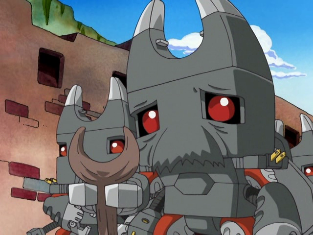 Gotsumon are inhabitants of Gotsumon Village terrorized by Grumblemon. One particular Gotsumon is an admirer of the Ten Legendary Warriors as well as an archeologist who seeks the three jewels to unlock the B Spirit of Light. Gigasmon attacks him, but he is saved by Koji Minamoto as Lobomon, though he loses the battle. Gotsumon takes Lobomon back to his village to recover, but an argument leads Gotsumon to head out on his own to become a Legendary Warrior. He finds the last jewel needed just as Gigasmon attacks, and holds Gigasmon off as Koji unlocks the Spirit and becomes KendoGarurumon. When Koji's inability to control his bestial instincts sends him and Gigasmon off of a cliff, Gotsumon saves Koji, and the two part on amicable terms. Can't Keep a Grumblemon Down