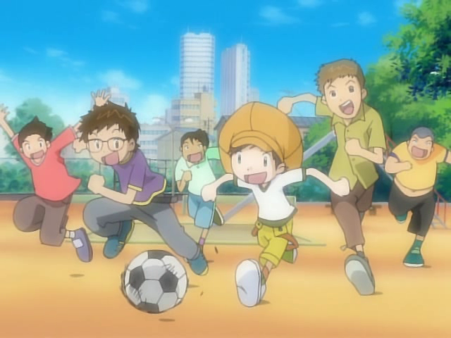After the DigiDestined save the Digital World, Katsuharu and Teppei nurture their new friendship with Tommy as they play soccer together. End of the Line