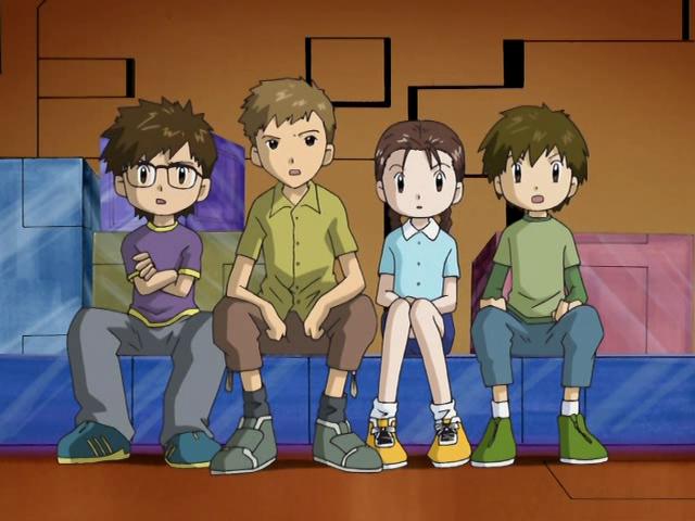 Katsuharu (勝春?), Teppei (鉄平?), Chiaki (千晶?) and Teruo (照男?) are four kids who were also called by Ophanimon to come the Digital World on the chance that they could inherit the Spirits of the Ten Legendary Warriors. Chiaki is the only girl among them.