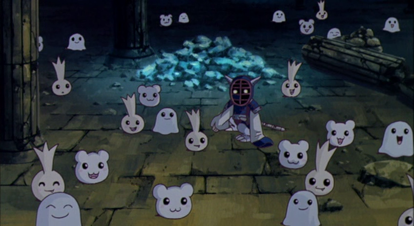 Nefertimon is the caretaker of Ophanimon's Castle who acknowledges the DigiDestined when they come to the castle to protect the final area from the Royal Knights' rampage. Though she claims not to know where the key is, she allows the DigiDestined free rein in searching the castle's many books. They search through the night but ultimately come up empty—the Royal Knights reveal why when they attack. Nefertimon herself is the key, and, under attack from the Royal Knights, pleads for the DigiDestined to kill her, as that would protect the area forever. The DigiDestined refuse, instead deciding to attack the Royal Knights head on. Lucemon, however, intervenes in the resulting battle from the Dark Area, defeating the DigiDestined. This action allows the Royal Knights to scan Nefertimon and, with her, the area. To Make The World Go Away
