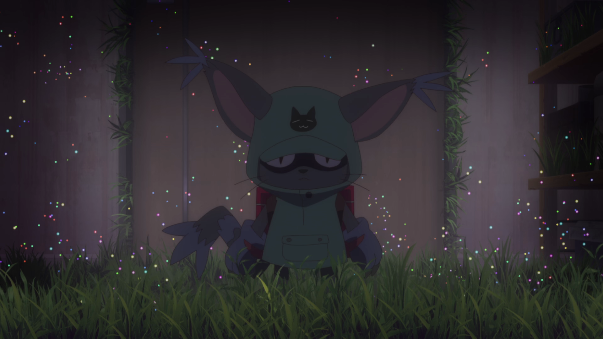 The surviving Oboromon peek at the heroes at a corner, calling GulusGammamon the "Pitch-Black Champion". Human Hunter