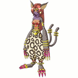 - Lynxmon: A flaming leonine Digimon. He is disguised as a lion and intimidates Piedmon's victims to walk the rope in his special sessions.