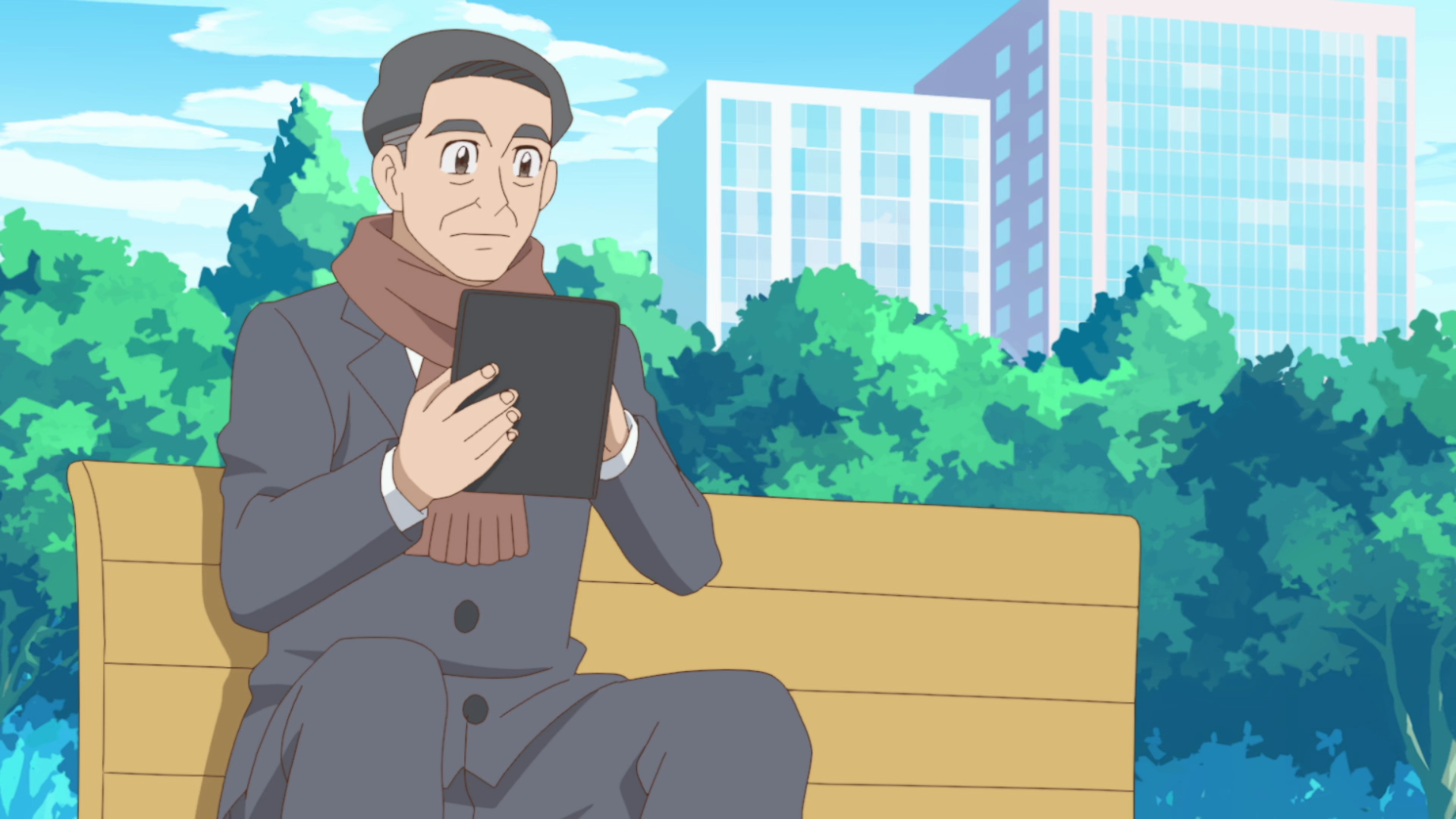 Kotaro becomes his first victim in a recent Hologram Ghost incident, where he attempted to delete a PubliNews notification on his Moogle mail, to no avail. He then clicked it to see what's really in there, only to find several incoherent and dull articles about trivial pranks and dismisses them as boring. On the 29th of September, he found the same newsletter publishing an article about how he will be injured in a fall and wrapped in bandages on the next day. On that day, Publimon dragged him down to the ground by using a pair of hands to grab his legs, causing his back to be broken by a stack of easels.