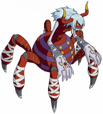Oboromon are Digimon resembling the ghosts of fallen Japanese warriors. Five of these wander around dark alleys looking for human victims. Once they spot a person, they will ask them to show an item with a color corresponding to theirs. If the victim fails to show the items, they will impale them with a sword and throw them into a portal where their victims have their limbs conjoined. Digimon cannot prevent them from pursuing their targets because they don't fall into their body count.