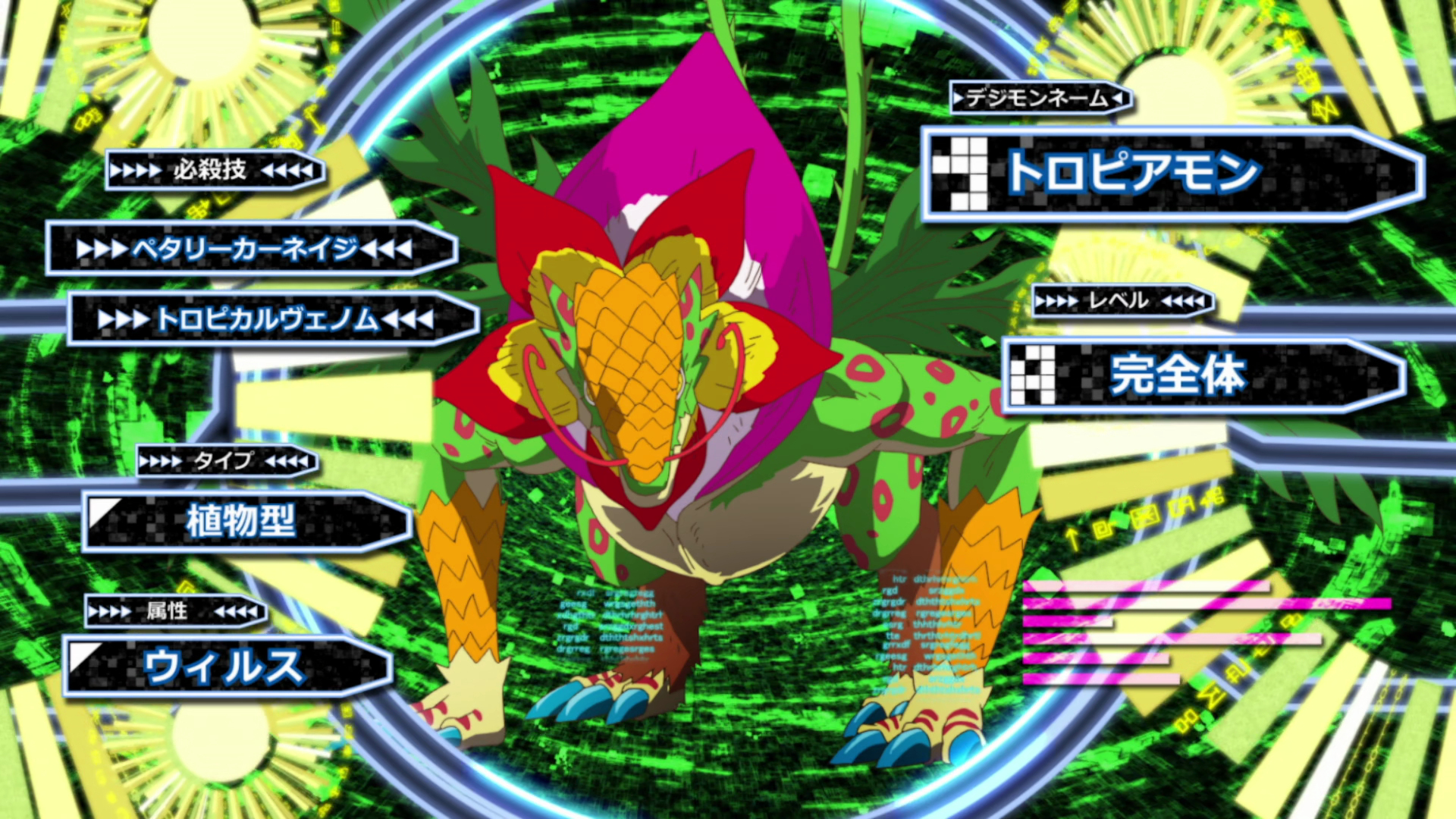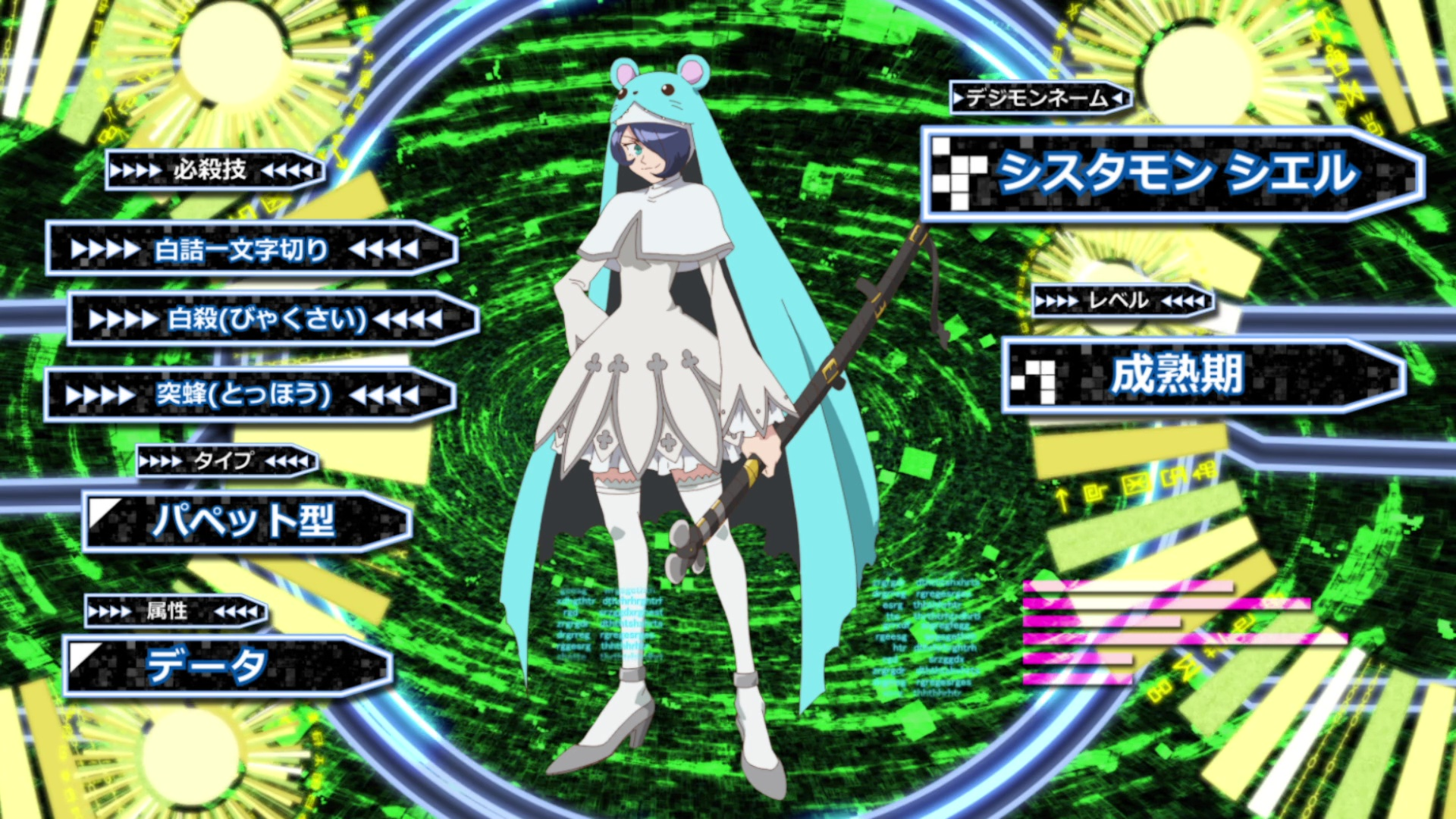 The party encounters him when they are chasing Shadramon from Ihara's house to the hillside Shadramon first died. By that point, he has fully manifested into a solid entity using Ihara's body and has completely overwritten the human's consciousness, although he's stuck on the human's body. Nanomon shows up within Ihara's ear, but only Espimon can see the nanomachine Digimon and rambles about how he's going to surpass the gods by placing his body into humans and emerging from them within, and announces plans to kill both Shadramon and Ihara as failed experiments. In battle, he controls Shadramon's body through drilling Ihara's ear and forcing him to fight the party. He was extracted when Teslajellymon uses Espimon's body to create a makeshift magnet to extract him from Ihara's ear and was trapped in a petri dish Mummymon brought. He remains remorseless, admitting that he will continue with more experiments before Black Gatomon Uver. arrives to arrest him. It's also revealed that his methods of attempting to render himself immortal didn't work to begin with since Shadramon disintegrated a short while after Thetismon separates him from Ihara's body.