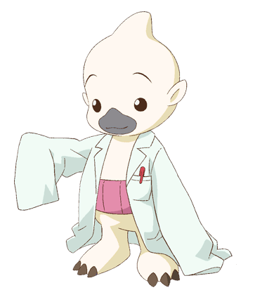 Tapirmon is Bokomon's protégé. He enjoys eating computer bugs and studying in the local library.