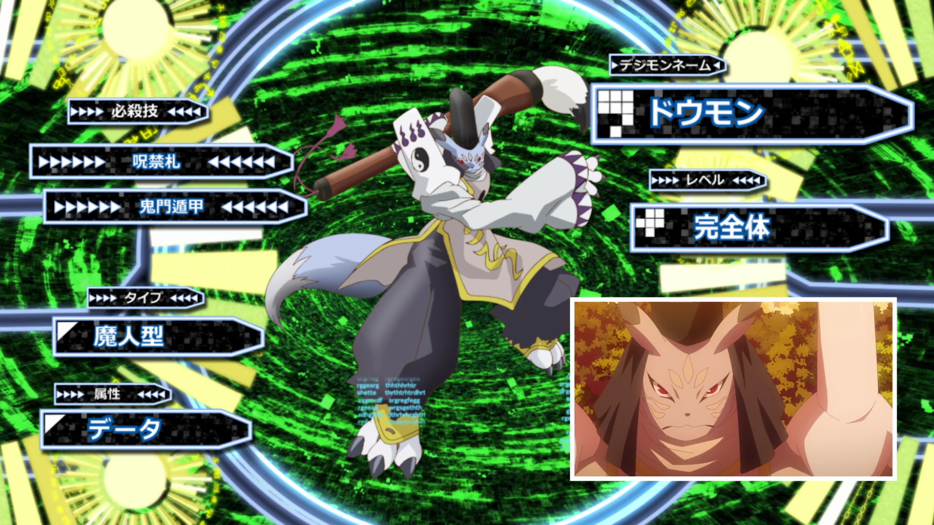 The surviving Oboromon peek at the heroes at a corner, calling GulusGammamon the "Pitch-Black Champion". Human Hunter