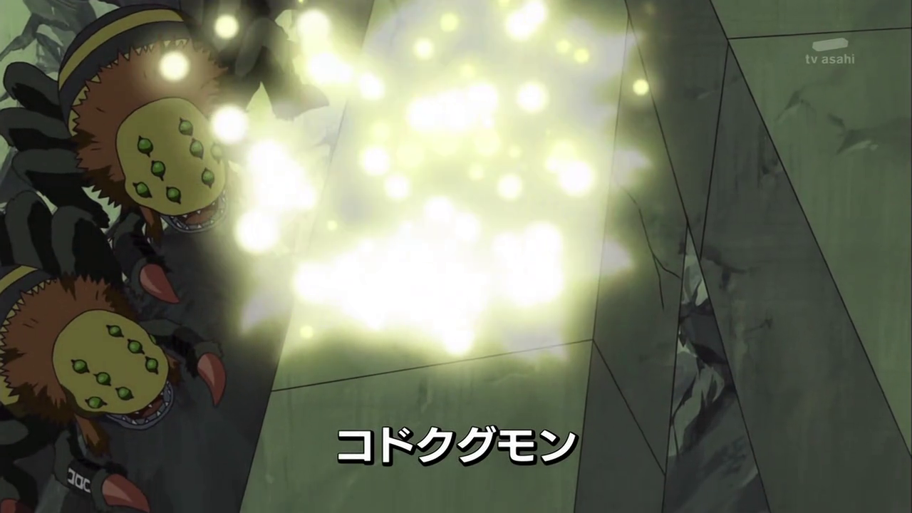 Reapmon and Mikey explore the underground caverns that provide water to the Sand Zone, with Mikey asking the former many questions. Reapmon suddenly fires on a group of KoDokugumon, explaining upon prompting that they moved into Silicalia after the city suffered a great tragedy. The two eventually stumble into a pile of rubble blocking their way, but Mikey uses the Guilmon DigiCard to break through. Within, they discover a golden sword. Reapmon explains that the tragedy was the death of the Warriors, and that he was the one who ultimately slew them. The Warriors protected Silicalia when the war raged through the World, turning it into a flourishing place. A young Reapmon trained with Angemon, desiring to be a Warrior of the Light, but he was continually not blessed by the Queen's light. Reapmon currently believes that the light from the statue is the Queen finally speaking to him to spare Mikey. As they walk, Reapmon reveals that the Warriors became highly aggressive due to a curse, and his body forced him to kill in self-defense, and that he works for the Bagra Army to can find the origin of the curse. At last, they escape to the surface.
