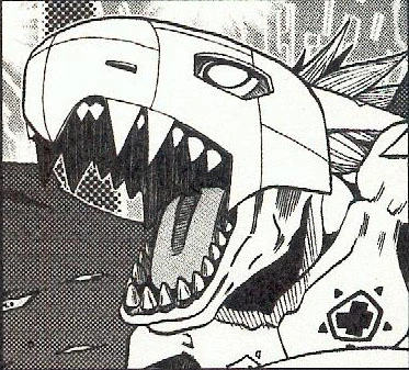 The Guardian of the Tag of the Metal Empire and the fourth of the Ultimate Digimon Tai and Zeromaru fight, MetalGreymon used to be a Greymon raised by Neo, but he was deleted because he kept losing in battles. After being deleted, he materialized in the Digital World and went to the Metal Factory to make himself stronger by modifying himself. Thereafter, he met Neo again in the Digital World and still loyal to his Tamer, wanted to show how much stronger he had become. He nearly defeated Zero, but Neo used him to gather more data on Zero. When he could not draw anymore information on Zero, Neo eliminated him.