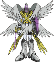 Seraphimon is one of the keepers of the golden Digi-Eggs, the other being Magnadramon. During the battle, Angewomon and Angemon warp digivolved into their Mega forms to release the Golden Digi-Eggs. After releasing them, the two Megas could not stay in this form and had to degenerate into Gatomon and Patamon. Digimon Hurricane Landing!!/Transcendent Evolution!! The Golden Digimentals
