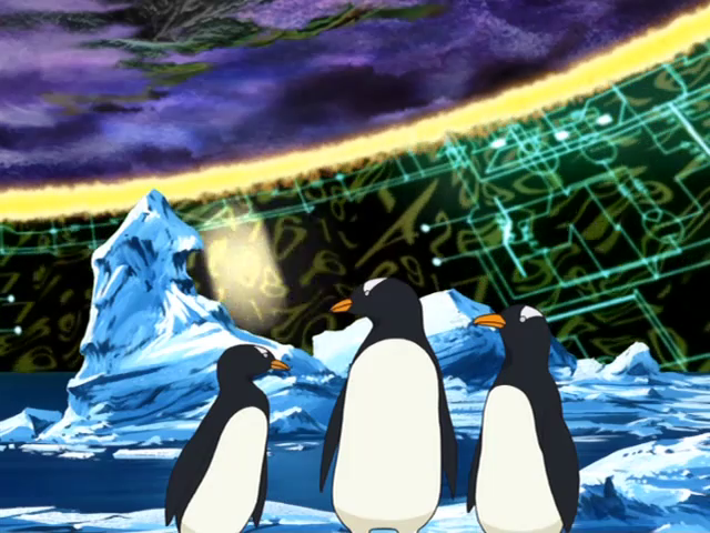 In Digimon Data Squad, some penguins gather in the Antarctic when a Digital Gate opens around the entire Human World. King Drasil's Fatal Decision!