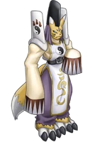 Renamon is a mysterious Kemonogami that appears before humans from time to time. It doesn't think very highly of humans, though rather than be hostile — it watches them them with a neutral standpoint.[1]