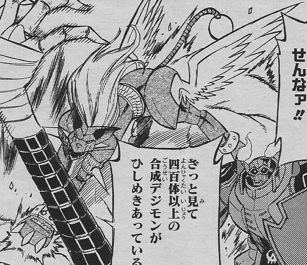 When Kosuke hacked into the Gateway to the Digital World a second time, Satsuki Tamahime of the DigiPolice showed up to try and stop him with Brigadramon. Dorumon, Loogamon, and Ryudamon were able to fight during the hacking — leaving the fighting to Chaosdramon. Just as Brigadramon was about to kill Chaosdramon, Eiji yells at them to stop fighting as "it" was here. Omegamon of the Royal Knights had arrived.