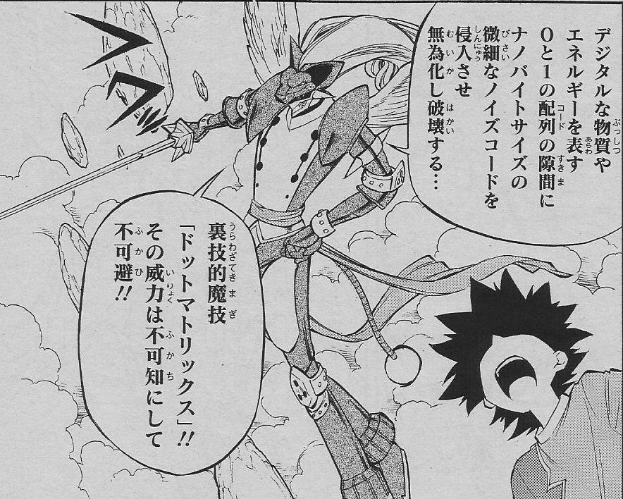 When Kosuke Kisakata and the other members of the future Sons of Chaos were hacking into an impenetrable firewall within the Wall Slums one of the Royal Knights shows up. Knowing full well they had no chance against a member of the Royal Knights Kosuke tells everyone to flee. Hacker Leon: WWW Airlines flight 626 Chapter 3-1