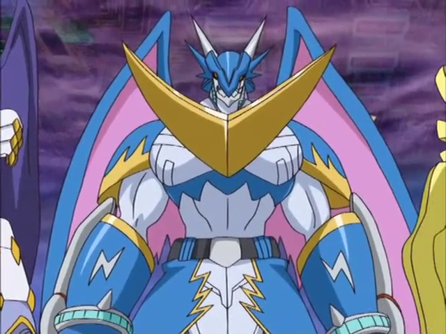 When Kosuke hacked into the Gateway to the Digital World a second time, Satsuki Tamahime of the DigiPolice showed up to try and stop him with Brigadramon. Dorumon, Loogamon, and Ryudamon were able to fight during the hacking — leaving the fighting to Chaosdramon. Just as Brigadramon was about to kill Chaosdramon, Eiji yells at them to stop fighting as "it" was here. Omegamon of the Royal Knights had arrived.