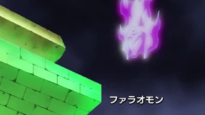 With Reapmon fatally wounded by Laylamon, Mikey pleads with the other Fusion Fighters to intervene, only to be stopped by the SkullScorpionmon. Pharaohmon then appears and tells Mikey to unleash the hidden power of the Sand Zone. By uploading the Code Crown, Mikey releases the Pyramid of Renewal, a floating pyramid protected by a force field where the Warriors of the Light were healed by their Queen. Pharaohmon then instructs Mikey, the newest Warrior of the Light, to download the Queen's healing power into the Fusion Loader and use it to restore Reapmon. Pharaohmon departs as the Queen initiates its Digimon Renewal Sequence. As the Fusion Loader does this, it cannot be used to either hold Digimon or perform DigiFuse.