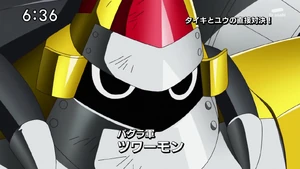 The United Army meets him head on, and though Ewan and Tuwarmon initially has the upper hand, Christopher arrives with ZekeGreymon. They then form Shoutmon X7, who takes Tuwarmon's attacks unscathed and strikes back. Ewan then realizes that Tuwarmon is actually being hurt, just as Tuwarmon disengages and flees with Ewan, leaving the other forces to die in the crumbling castle. Whispered oversees it all from a distance, and all parties involved regroup, with both Tuwarmon and Beelzemon hiding grievous wounds from their respective armies.