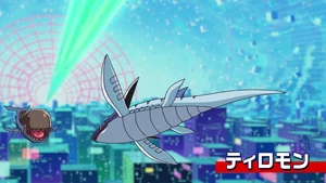 Izzy informs Tai and the others about Soundbirdmon, leading Biyomon to believe that she saw them as well. Izzy and Kabuterimon continue on their way to the Digital World, while Devimon relays orders to Ogremon to continue its search for the DigiDestined. The remnants of Valdurmon finally pass. Palmon observes the commotion from a large distance and reports to Mimi Tachikawa.
