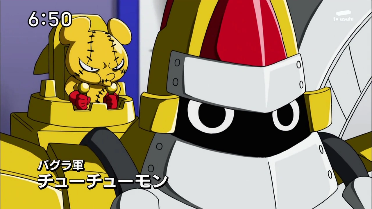 - Although this episode depicts Laylamon Combined's catsuit as being without cups, when the Sun-wheel Army is marching, the catsuit has cups, and the chest part is miscolored as green.