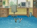 Inside the air vent, Ken thanks Cody for his help, but Cody says he was just paying back Ken's help during the Thundermon Incident. On the other side of the house, T.K., Pegasusmon, Kari, and Nefertimon escape the Snimon into an office with a gigantic computer and set up a defensive stance.