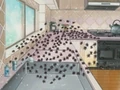 Davis' group heads inside through the kitchen's window and is attacked by an army of Roachmon. Veemon, Armadillomon, and Wormmon Digivolve to their Champion forms to fight them off, but are soon forced to flee due to being outnumbered. At the same time, an army of Flymon and Snimon chases T.K.'s group, and they're also forced to flee inside the Giga House, alerting them that something is wrong with this swarm of Insect Digimon.