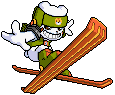 - V Jump Attack: Charges his enemy on his skis and attacks with them in a V shape.