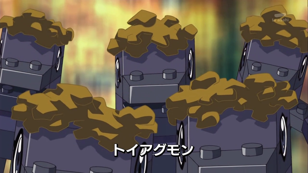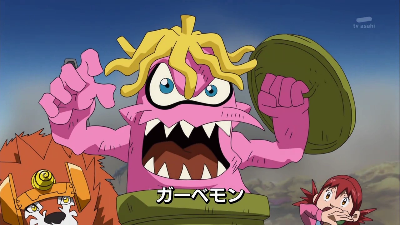 - When Mikey and Shoutmon are discussing GrandLocomon's plan, Cutemon's eyebrows are missing.