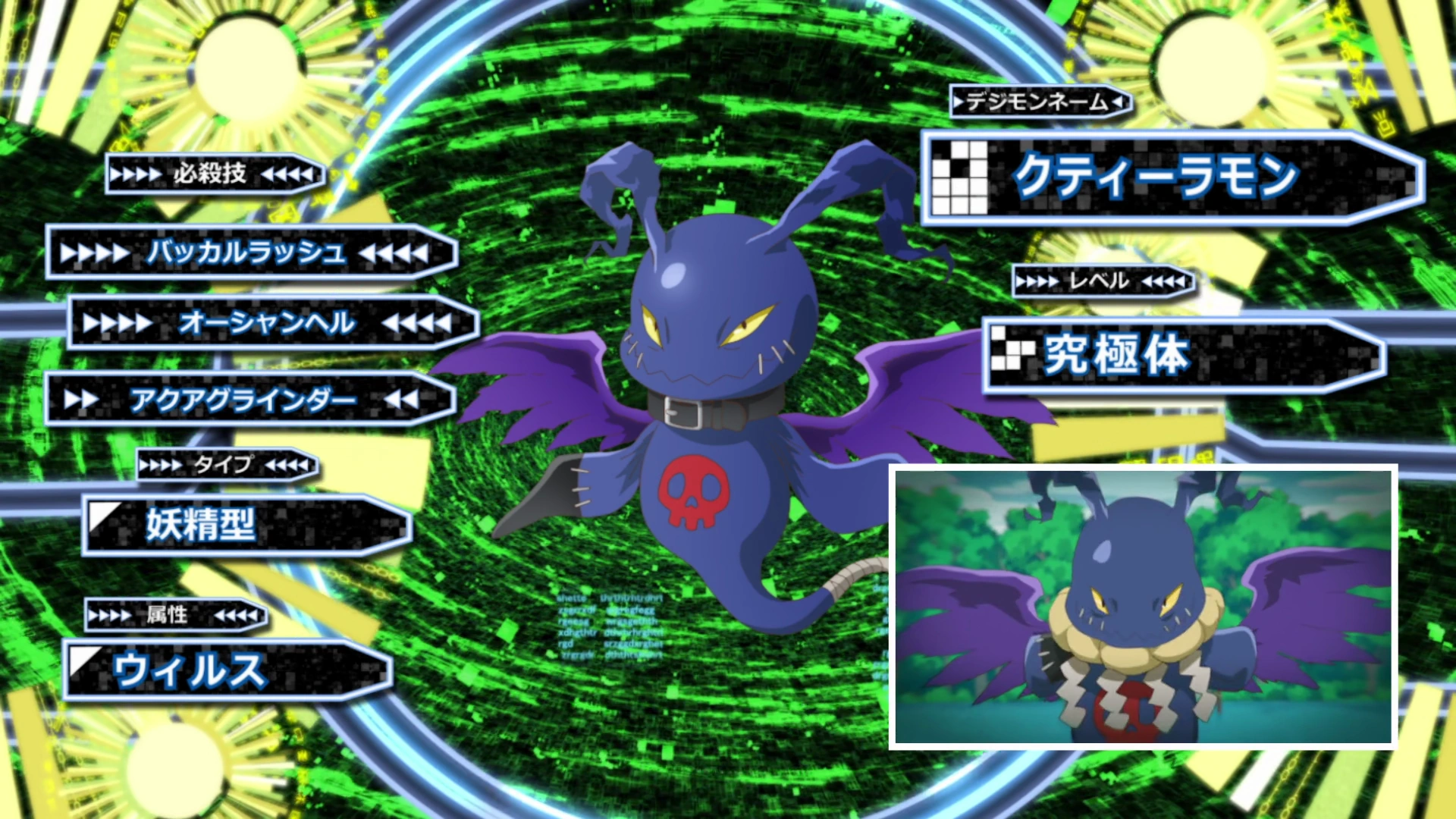 | Hiro: "Cthyllamon" Angoramon: "It's sometimes called the ocean ghost because of the skull on its chest." Ruli: "On the night of Obon, countless hands reach out from the waves screaming, "Give me a ladle!" If you hand one over, it scoops water into your boat until it's flooded and sunk!" Kiyoshiro: "The only ocean I'm getting near is on the Internet!" | |