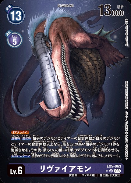 这是当今数码世界中最强大的怪物,它被称为“恶魔怪兽”。由于这个怪物拥有的强大而恐怖的力量,被认为是“七大魔王”之一。这个庞然大物拥有连数码世界也能吞噬的巨大的颚。传说正沉睡在黑暗区域附近的网络海底,如果他被唤醒,他会藐视任何数码宝贝,甚至天使型数码宝贝见到他也要逃跑,更不用说其他魔王型数码宝贝。不过,作为数码宝贝仍在可解码(解读)的范围内,几乎从未现身过,据说是盘踞在数码世界的根源性邪恶所在。