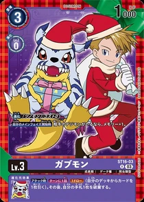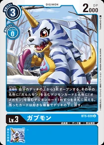 | 日语 | ガブモン | 来自日语ガブガブ(咕嘟咕嘟声)和英语Monster(怪兽)。 |