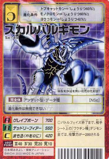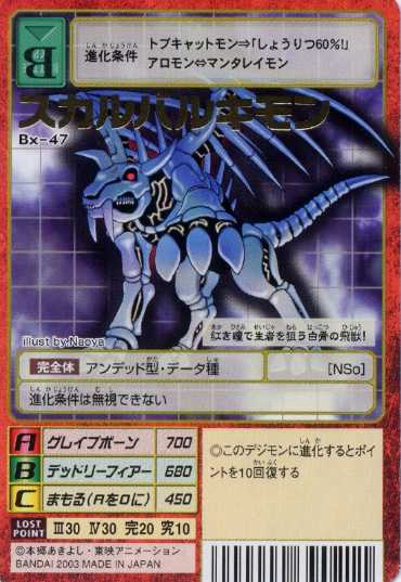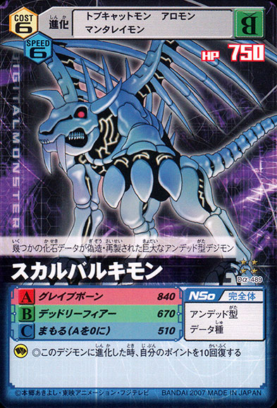 從被偽造為陸地上最大哺乳類的化石資料中重現,不具有感情與智慧的巨大不死型數碼寶貝。那巨大身軀僅憑著散佈於體內的神經數據進行反射性活動,它將不斷重複殘酷無情的殺戮,直到自身再也無法動彈為止。傳說不論是強加於其身使其從數據殘骸中復活的詛咒,還是從胸口中持續散發的奇寒黑霧,都能讓見到它的所有數碼寶貝不由自主地陷入對死亡的無盡恐懼當中。