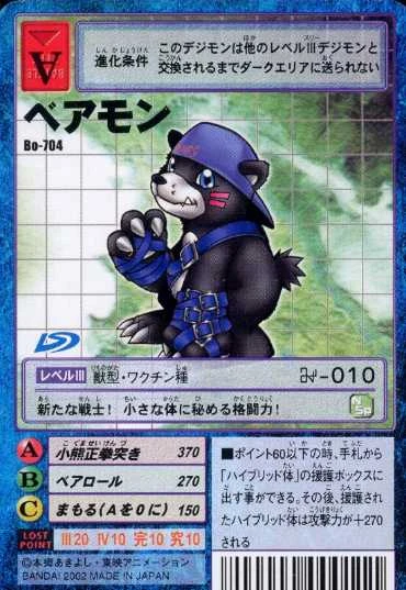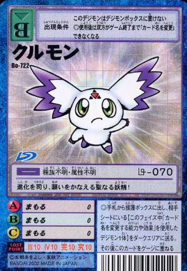 | 紀念套組 | 特選檔案第一彈 • 特選檔案第二彈 • 數碼寶貝15周年紀念套組 • 數碼寶貝大冒險15周年紀念套組 • 數碼寶貝大冒險tri. 第一代紀念套組 • 數碼寶貝20周年紀念套組 | |