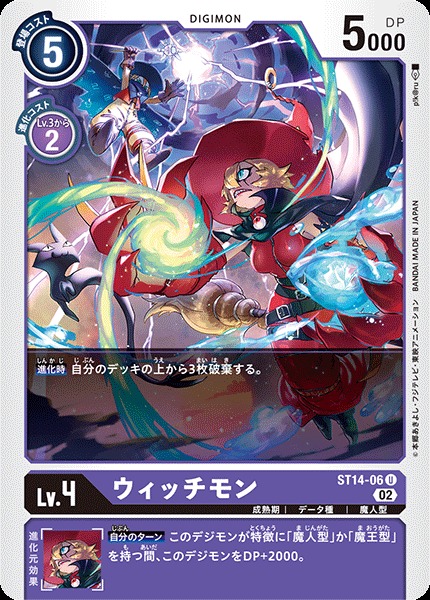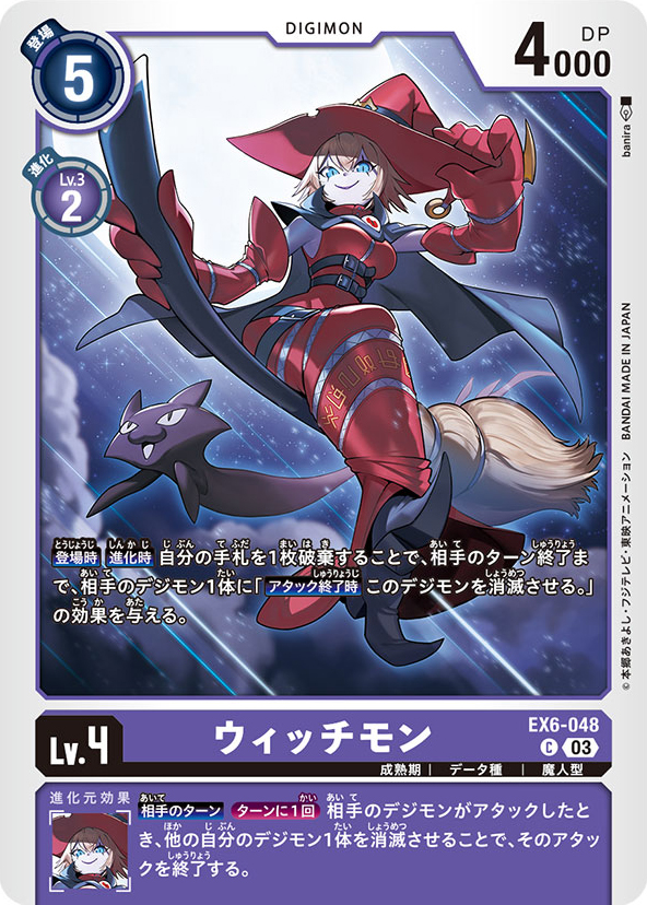 外型像魔女的數碼寶貝,追著勁敵巫師獸,從其他次元的數碼世界「威徹爾尼」前來。女巫獸在故鄉威徹爾尼精研風與水魔法(高階程式語言),為了超越目標成為大魔導士的巫師獸,就追在巫師獸後頭而來到這個數碼世界努力修行。女巫獸也有稍微殘酷的一面,自尊心很強,討厭循規蹈矩的事情。必殺技是帶有魔力的銳利吹風「盧娜烈風」,以及連鋼鐵也能貫穿的超強水壓「水族重壓」。
