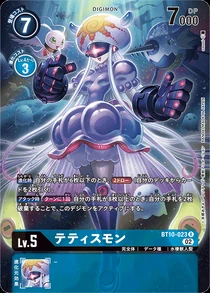 在孕育數碼寶貝生命的誕生地──網路之海(Net Ocean)海溝最深處發現,以人類女性之姿出現的水棲獸人型完全體數碼寶貝。不只是化身為即刻制裁擾亂國土安寧數碼寶貝的鐵鎚,在忒提斯獸所治理的廣大領地之中,沒有一寸領土不享受著忒提斯獸帶來的安定與祥和。秉持著鋤強扶弱的精神,雖然對於威脅領地的敵人不會有絲毫留情,但對於需要幫助的對象也不會吝於伸出援手,引導它們到安全的地方。