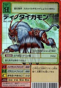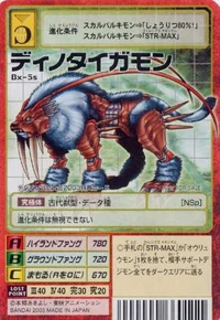 受傷的數碼寶貝會成為此種數碼寶貝的糧食。歷經無盡的弱肉強食之戰後,最後活下來的部份黃金劍獅獸吸收大地的金屬成份,讓全身超級硬化後進化而成的古代獸型數碼寶貝。速度與黃金劍獅獸相比雖然不快,卻擁有比黃金劍獅獸大上將近兩倍的強韌肉體與肌力。即使面對比自己巨大且皮膚厚,或是擁有裝甲的數碼寶貝,也能夠利用刀劍般銳利巨大的牙齒強行給予致命一擊。恐虎獸個性勇猛且擁有野生動物般的獵食本能,因此其他數碼寶貝都害怕地不敢靠近。必殺技是壓住敵人,再用長牙刺穿、扯裂的「大地獠牙」,還有從高處向下揮舞長牙,在一瞬間撕裂對手的「高地獠牙」。