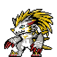 身上长着许多巨大的穗状花序的兽人型数码宝贝。他有锋利的红色爪子,可以切下任何东西,黄色的羽毛刺可以给任何东西注入能量。它有一种无忧无虑的性格,喜欢收集让他睡得很舒服的柔软材料和寻找他喜欢的食物。