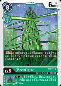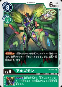 运算程序·算法的错误(Bug)中产生的数码兽。由于其高速处理能力,使用无数如触手一般的藤蔓,压制广大区域。必杀技是使用触手压缩敌人的力量,封住其动作的“投狱”,以及肢体眼部放出的“消去光线”。另外,在压制广大区域时会变化成名为“蠕虫态”的寄生体。