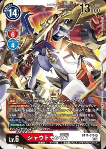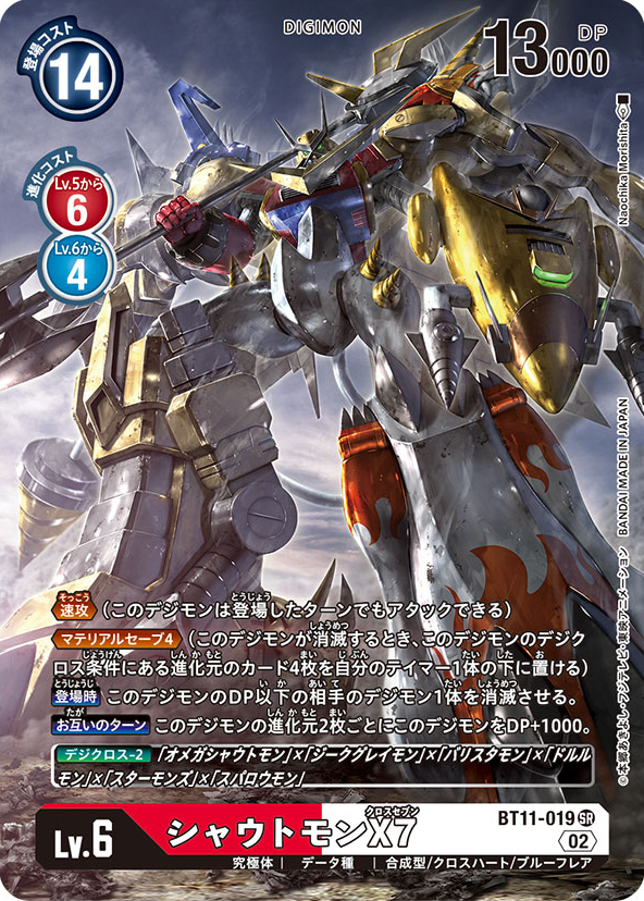 四颗炽热的心脏在构成身体的「黄金数码合金」中燃烧,散发出神圣的气息。当高吼兽 X7站在战场上时,就是在实现一个和平的世界,这就是扩散到高吼兽 X7中的数码兽的全部目标。