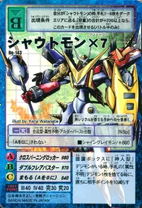 高吼兽X7 是 奥米加高吼獸、吉克暴龙兽、弩機獸、多路路獸、五角星兽 和 麻雀獸 的 DigiXros。 奥米加高吼獸 充当核心,它的金色 V 取代了它作为 高吼獸 的 V,而 弩機獸 形成了身体。 奥米加高吼獸 的身体作为连接在左臂上的刀片,位于麻雀獸 的 Zanahoria 和 多路路獸 的头部作为左肩的正上方。 右臂以弩炮兽的头为肩膀,以极暴暴龙兽的下半身为右臂的铠甲。 左腿由多鲁鲁兽的双腿构成,右腿由基克暴龙兽的上半身和头部构成。 X7 的背面是 音音所屬 的翅膀向上翻,吉克暴龙兽 的翅膀向下翻,而 五角星兽 坐在中央。 X7的新头盔取自全能吼兽的后背。 高吼兽X7 使用扩展的 高吼獸 麦克风以解决其庞大的尺寸。