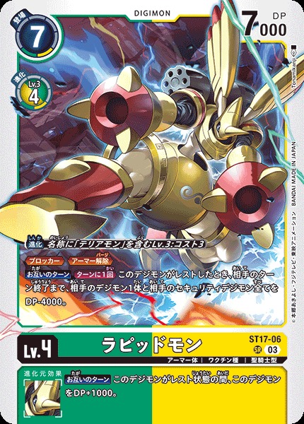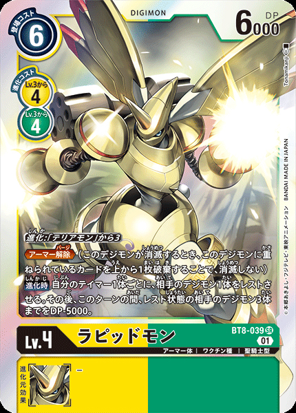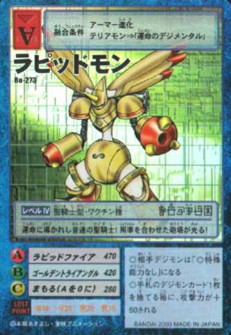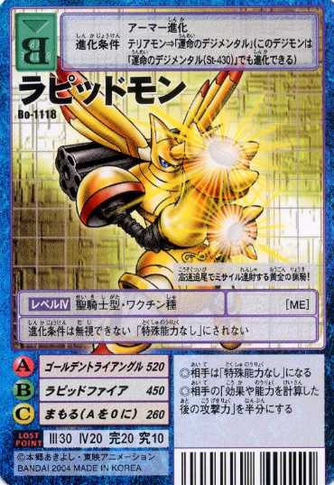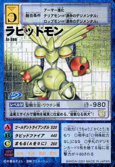 由大耳獸使用「命運裝甲」力量進化而來的裝甲體聖騎士型數碼寶貝。雖然在正常情況下,拉比獸是加魯哥獸進化而來的完全體數碼寶貝,但在「命運裝甲」的影響下,散發金色光輝的黃金拉比獸擁有著足以與究極體數碼寶貝並駕齊驅的力量。