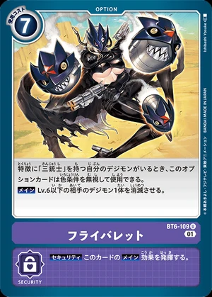 特徴に「三銃士」を持つ自分のデジモンがいるとき、このオプションカードは色条件を無視して使用できる。
